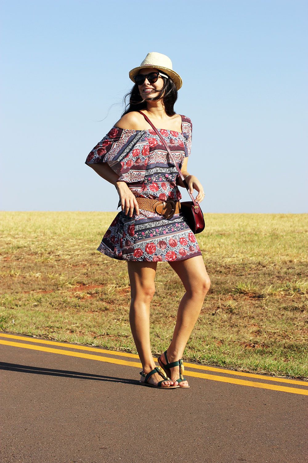 A tendência boho está super presente no meu dia a dia. Para completar um look “boho”, podemos incluir uma rasteirinha de couro bem basicona, bolsa com alça longa, chapéu e baby liss nos cabelos hehehe!