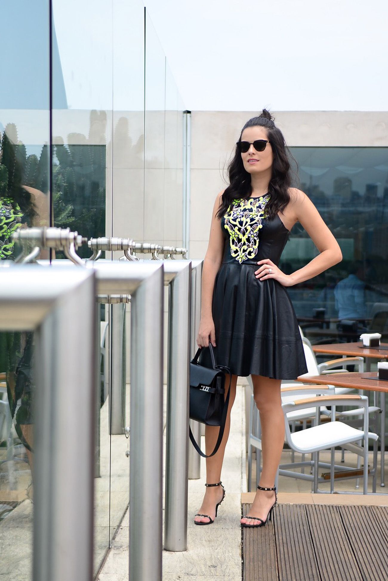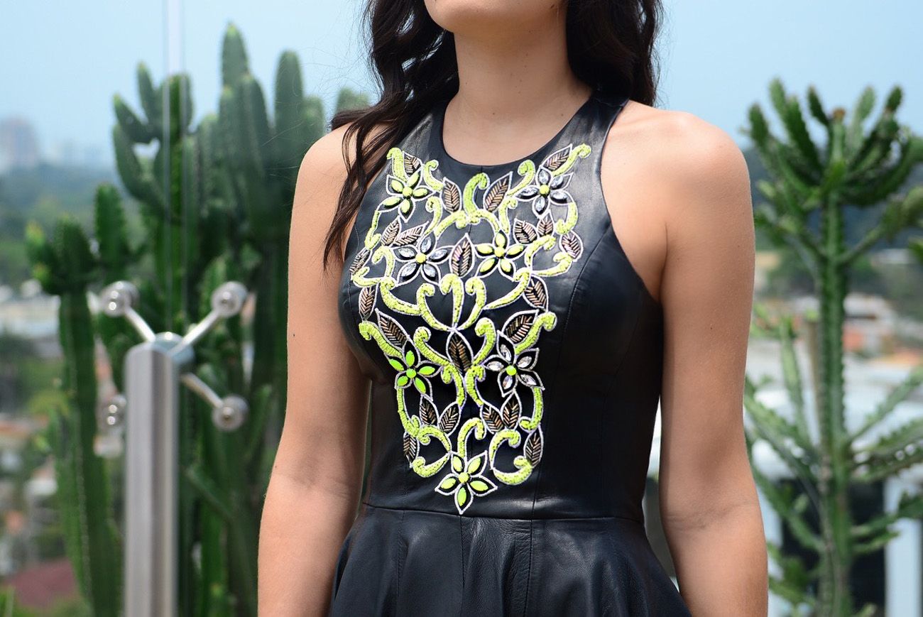 Esse look me conquistou desde quando vi este vestido no showroom da Alfreda! Não é a minha cara, gente? De couro, com a cintura marcada, curtinho, saia rodada e bordado! Usei durante o QG Fhits claro! Nada como uma roupa que a gente se sente bonita, pra ficar bem o dia todo. Obrigada Alfreda, amei! Já estou ansiosa pra ver a coleção Resort que está pra sair.