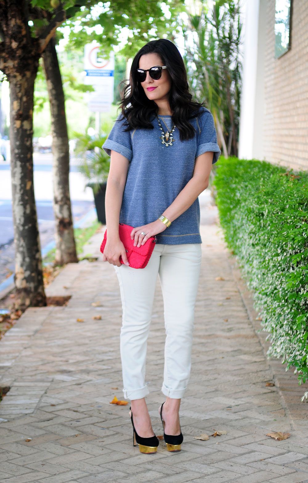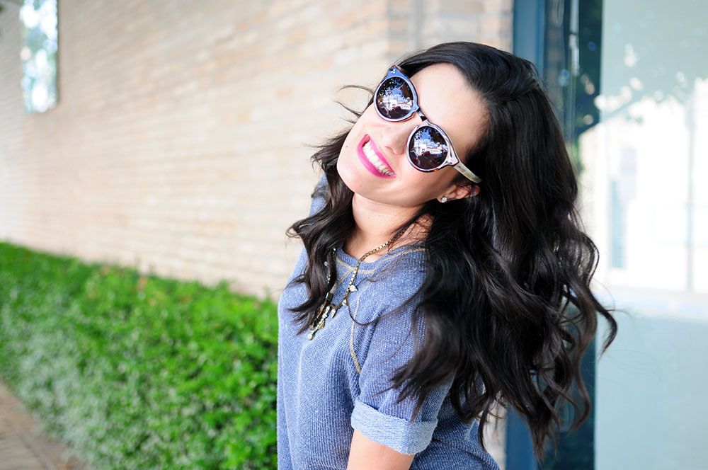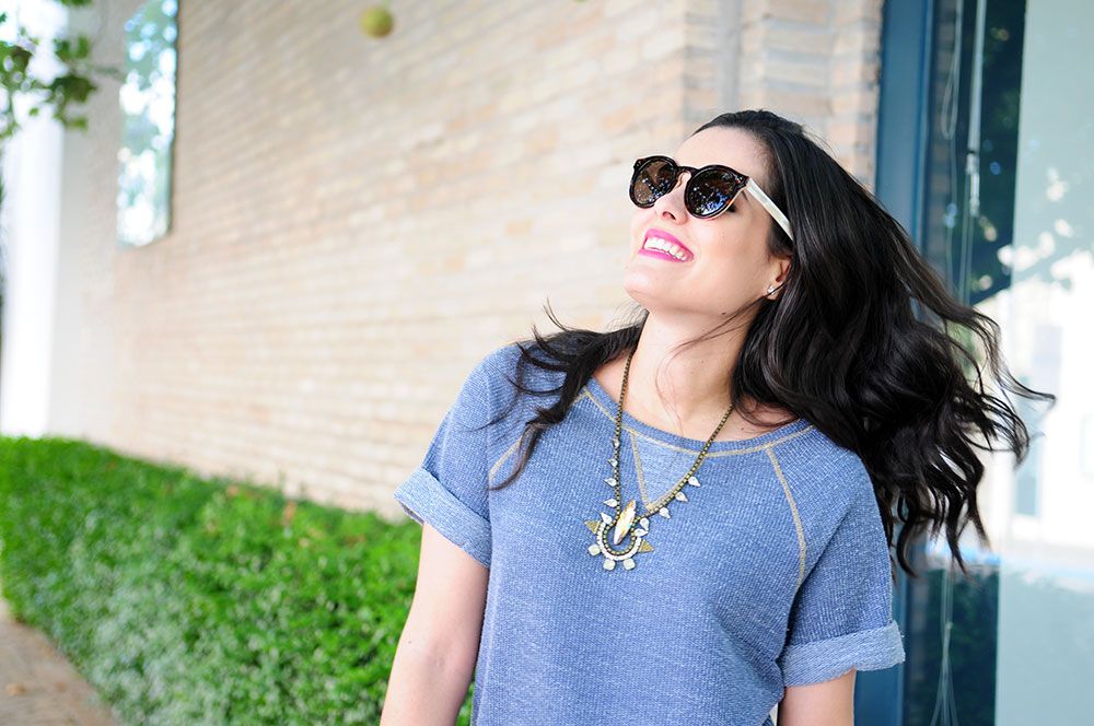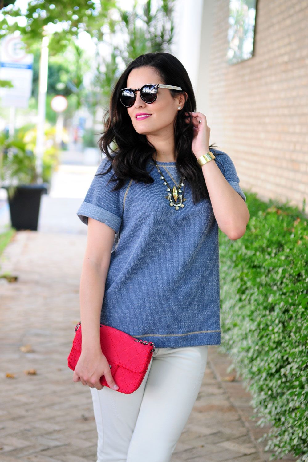 Sou apaixonada por este look laranja! A saia é tipo aquela bafônica sabe? Veste muuuuito bem e chama bastante atenção rs. As camisetas de malha não podiam faltar da minha seleção, pois uso muito no meu dia a dia! Eu quis fazer uma produção mais informal, mas esta saia fica top para festas e eventos mais formais. Os acessórios em turquesa deram um colorido a mais no look. Não tem problema combinar acessórios chamativos com roupas chamativas, é só fazer a combinação certa de cores, ok?